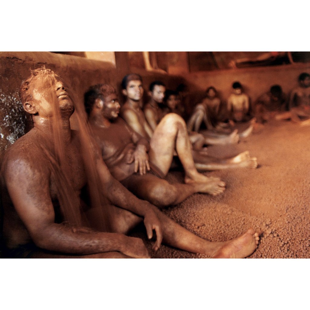 Temně rudou hmotou – napůl hlínou a napůl pískem – si zápasníci potírají tělo. Brzy se smísí s potem a oni věří, že je ochrání, že má léčivé účinky.